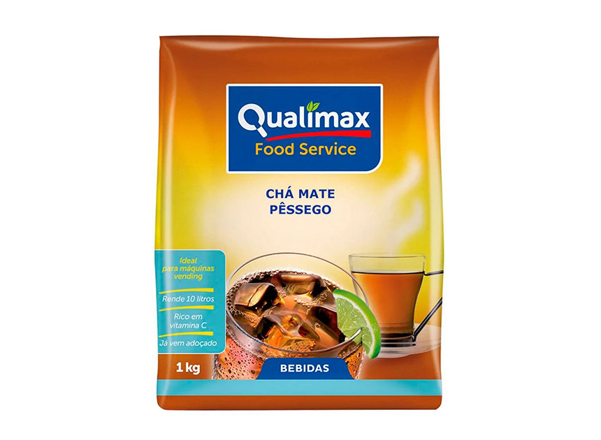 O Chá Mate Pêssego da Qualimax Food Service do RS Café já vem adoçado. É enriquecido com vitamina C. Bebida à base de mate, instantânea e prática, pode ser servida tanto fria como quente.